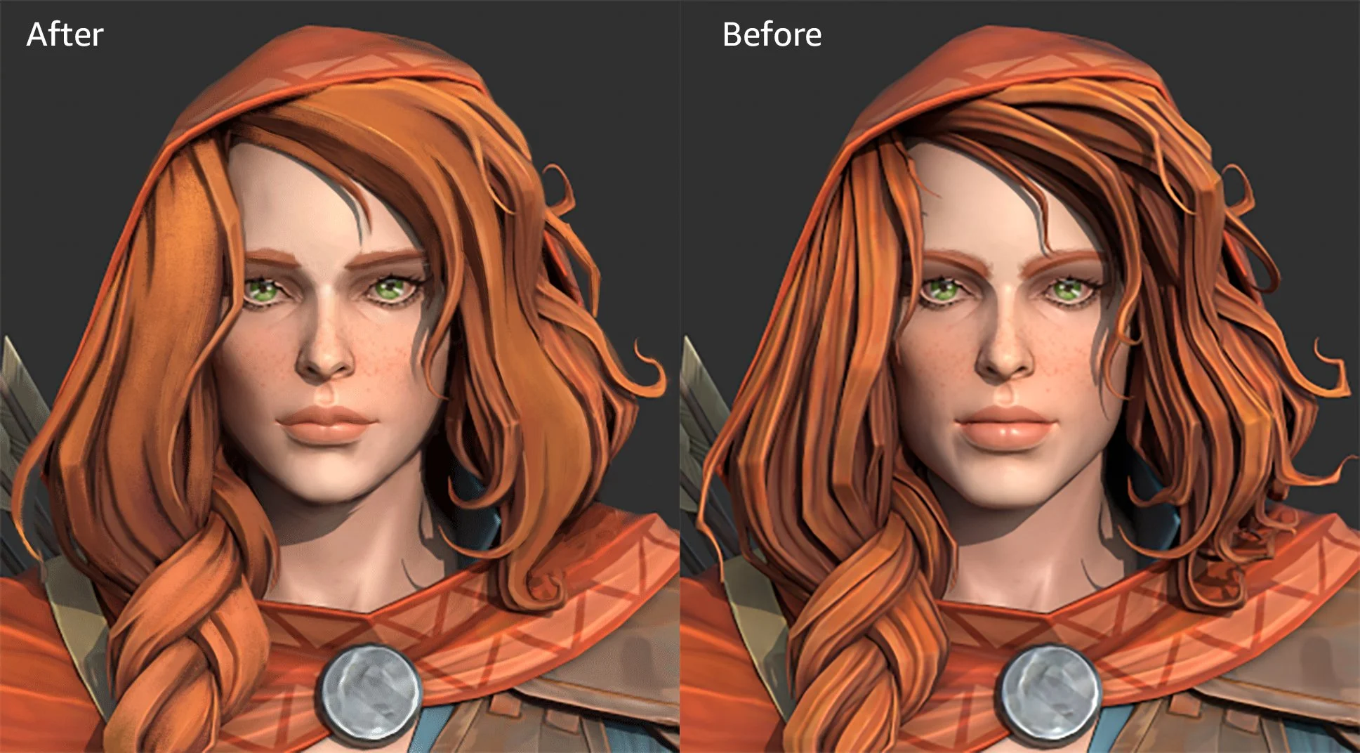 I was tasked with exploring a unique visual identity for female elves. The challenge was to create a look that felt otherworldly while still retaining beauty and elegance. The elves were meant to feel distinct from humans—ethereal, timeless, and refined—rather than simply idealized versions of people.